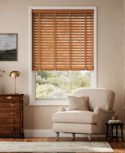 Create cozy, light-controlled spaces with our timeless wooden blinds.